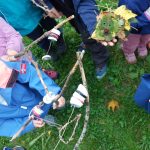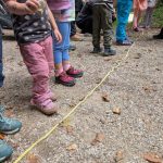 Passend zu den Geschichten wurde, am Waldkindi-Platz von den „Waldstrolchen“, kleine Zwerge aus gesammelten Stöcken geschnitzt oder an Baumstämmen Zwergenhäuser gebaut. Dabei hatten die Kinder und auch die Eltern sehr viel Spaß.