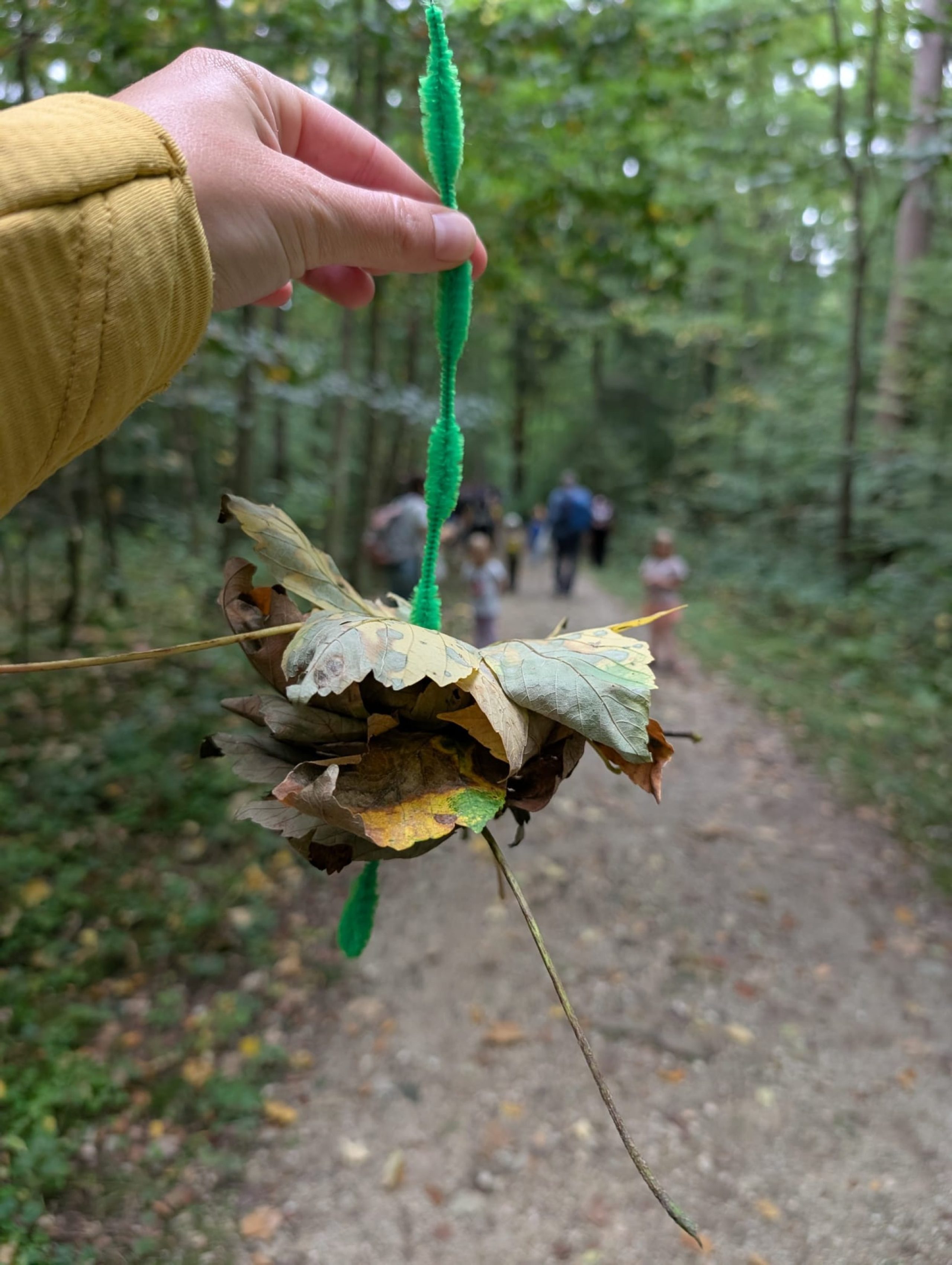 Am 21. September trafen wir uns am Parkplatz an der Kneipanlage in Metzingen zur Familienwanderung des N-A-N-U. Wir waren eine große Gruppe mit 20 Erwachsenen und 18 Kindern jeglichen alters. Nach einem kurzen kennenlernen starteten wir gemeinsam in Richtung Wald. Auf der großen Wiese, bevor es in den Wald ging, bildeten wir einen großen Kreis. Wir spielten zunächst ein Spiel, bei dem Tierstimmen wieder gegeben wurden. Die verschiedenen Tiere kamen dann zusammen, so stand man immer mit unterschiedlichen Leuten in der Gruppe zusammen und kam ins Gespräch und jeder stellte sich den anderen vor. Danach war das Eis gebrochen und wir wanderten bunt gemischt weiter. Svea baute unterschiedliche Spiele in die Wanderung ein bei denen Groß und Klein eingebunden wurden. Wie z. B. das Stockspiel bei dem die Erwachsenen Stöcke hielten und die Kinder unten oder oben drüber springen durften. Im Laufe der Wanderung stellte uns Svea auch einige Bastelideen vor, die wir mit Materialen aus dem Wald und mit denen die wir mitgebracht hatten, später nachbasteln konnten. Auf dem Weg zur Grillstelle gab es am Wegrand Tierfiguren aus Holz zu entdecken, zu denen Svea den Kindern Fragen mit verschiedenen Antwortmöglichkeiten vorgab. Wurde die richtige Antwort von den Kindern gewählt, erhielten sie als Preis einen Kronkorken. Diese wiederum konnten später an der Grillstelle zu Holzrasseln verbaut werden. Die Tierfiguren fanden sich auch in den Bastelideen wieder, für die Svea Schablonen dabei hatte, die man auf Klopapierrollen übertrug und ausschnitt. Mit weiteren Materialien wie Tannenzapfen und Reißig entstanden so Eichhörnchen, Igel und weitere Waldbewohner. An der Grillstelle angekommen haben wir uns zunächst etwas gestärkt und konnten dann mit den gesammelten und von Svea zur Verfügung gestellten Hilfsmitteln noch weitere Figuren und Rasseln und Raupen etc. basteln. Rund um war es ein sehr spannender abwechslungsreicher kurzweiliger Nachmittag. Wir bekamen viele Ideen und Anregungen, wie wir in der schönen Herbstzeit auch mit einfachen Mitteln aus dem Wald, kleine Kunstwerke erschaffen können. Die Raupe Nimmersatt die auf einem Pfeiffenputzer gesteckte Blätter waren, hängt bei uns nun an der Eingangstür und erinnert uns jeden Tag an den schönen Ausflug mit dem N-A-N-U.