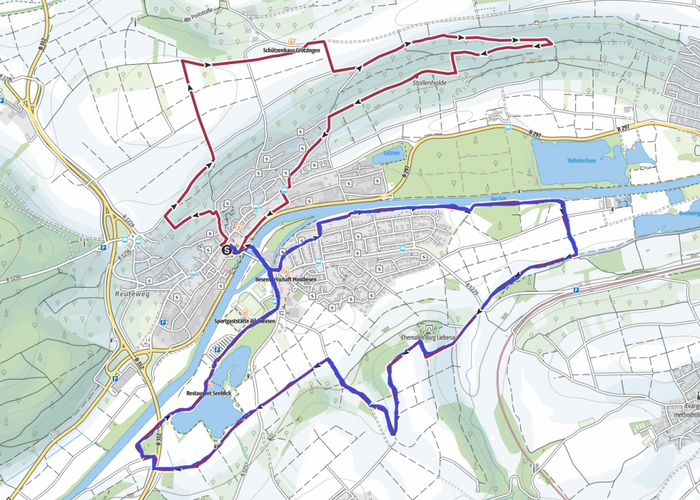 Weg Nr. 2 (blau) – Rechts des Neckars im „neuen“ Teil Neckartailfingen`s.