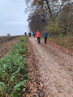 In Fahrgemeinschaften fuhren 25 Personen zum Wanderparkplatz zwischen Wolfschlugen und Neuhausen/Filder. Die 1. Etappe führte uns zu den Lindenhöfen wo wir uns mit Getränken bzw. Essen für den weiteren Weg stärken konnten. Der Rückweg erfolgte, unter eintretendem Nieselregen, auf breiten Wegen durch den Sauhag. Der Abschluss erfolgte, in gemütlicher Runde, im Albvereinsräumle in der Kelter. DANKE an Isolde und Nicole für die tollen Leckereien.